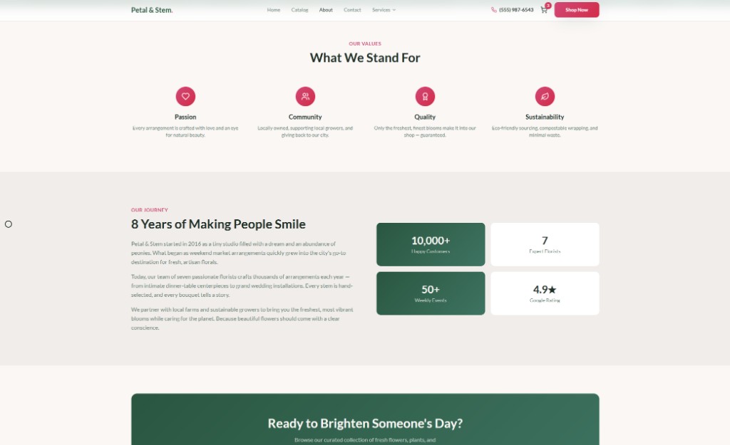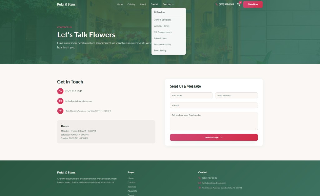 Florists compete with national delivery apps. Petal & Stem needed to feel boutique and artisanal while still pushing clear paths to shop, call, or order — especially on mobile where most gifting decisions happen.